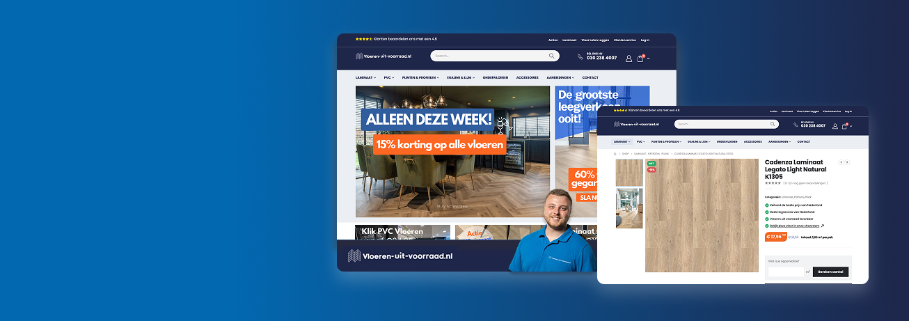 Vloeren Uit Voorraad, een toonaangevende vloerenretailer in Nederland, had een duidelijk doel: PVC-, laminaat- en houten vloeren van topkwaliteit aanbieden tegen onverslaanbare prijzen. Hoewel hun fysieke winkel in Utrecht floreerde, wisten ze dat online uitbreiden de sleutel was om meer klanten te bereiken en hun activiteiten te stroomlijnen. Ze kwamen echter verschillende obstakels tegen om deze visie werkelijkheid te laten worden.